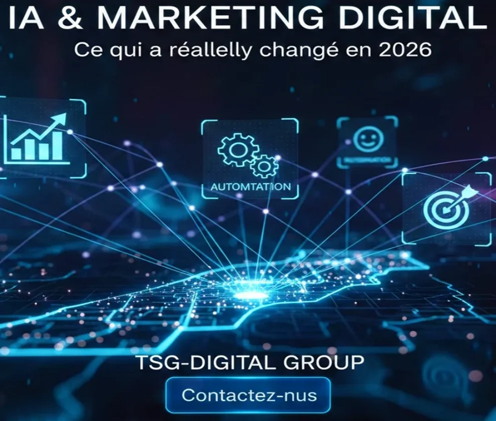 TSG-DIGITAL GROUP est une agence digitale à Casablanca, spécialisée dans la création de stratégies digitales performantes, le développement web & applicatif, le référencement SEO/SEA, l’automatisation intelligente (IA & GEO) et la création graphique professionnelle.